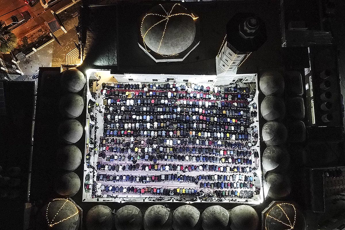 Devotos palestinos rezan durante el Ramadán, en una mezquita en Gaza.