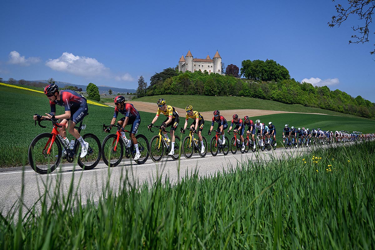 Un ucraniano pasa con su bicicleta frente a un edificio destruido en la ciudad de Kharkiv.