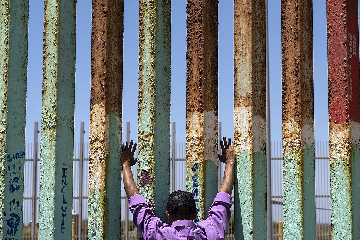 Un hombre reza frente a la muralla entre la frontera Estados Unidos-México, durante la conmemoración del dia del veterano deportado, en Tijuana.