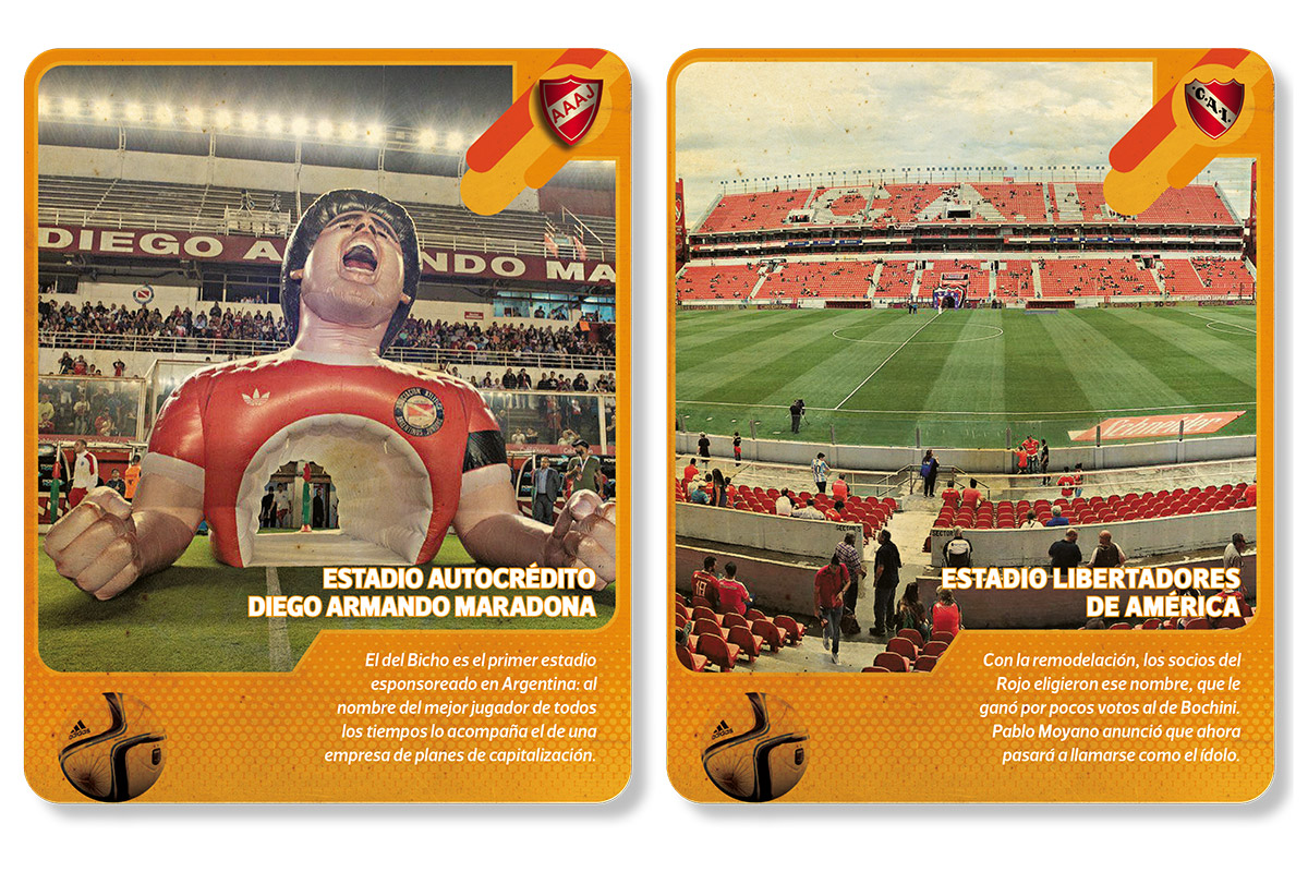 En La Paternal se erige el primer estadio patrocinado del fútbol argentino. En 2018, Argentinos Juniors decidió anteponer el nombre de una marca al de Diego Armando Maradona. Por eso a la cancha ubicada en Juan Agustín García y Boyacá se llama desde entonces “Estadio Autocrédito Diego Armando Maradona”. Aunque el naming sí ingresó en algunos recintos tradicionales de la Argentina como el de Obras Sanitarias, que entre 2006 y 2012 se rebautizó como Pepsi Music, o los más novedosos DirecTV Arena (en Tortuguitas) y Movistar Arena (en Atlanta), el fútbol aún parece cerrado a esa posibilidad. “Para el club el convenio por el naming fue positivo, sobre todo si se analiza el efecto de marketing y valor marca de Argentinos Juniors. Hubo algunas críticas dada la creencia de que desaparecía el nombre de Diego Maradona, pero con el tiempo y viendo que eso no sucedió, el balance en todo sentido fue positivo y, de hecho, otros clubes nos llamaron para saber cómo trabajar el tema”, explica Pablo Soro, exresponsable de márketing de Argentinos, y avisa: “Creo que la actual pandemia acelerará la búsqueda de nuevos ingresos para los clubes y me parece que el naming tiene un camino allanado en términos de usos y costumbres”. Para el gerente de márketing de uno de los clubes grandes el límite al naming no está en las tradiciones sino en la infraestructura de los estadios: la mayoría de las canchas tiene más de 60 años y no son un gran imán para las marcas, que apuestan por construcciones más modernas. Eso explica por qué algunos de los estadios de Brasil construidos para el Mundial 2014 o los nuevos europeos (Wanda Metropolitano, del Atlético de Madrid, o Emirates Stadium, del Arsenal) son conocidos por su nombre de empresa.