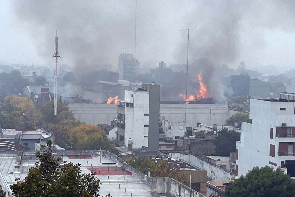 Asimismo, indicaron que «se retiró a todo el personal del interior del depósito ante peligro de derrumbe», ya que «se visualiza mediante los drones emplazados que el fuego incursionó por todo el techo”.
