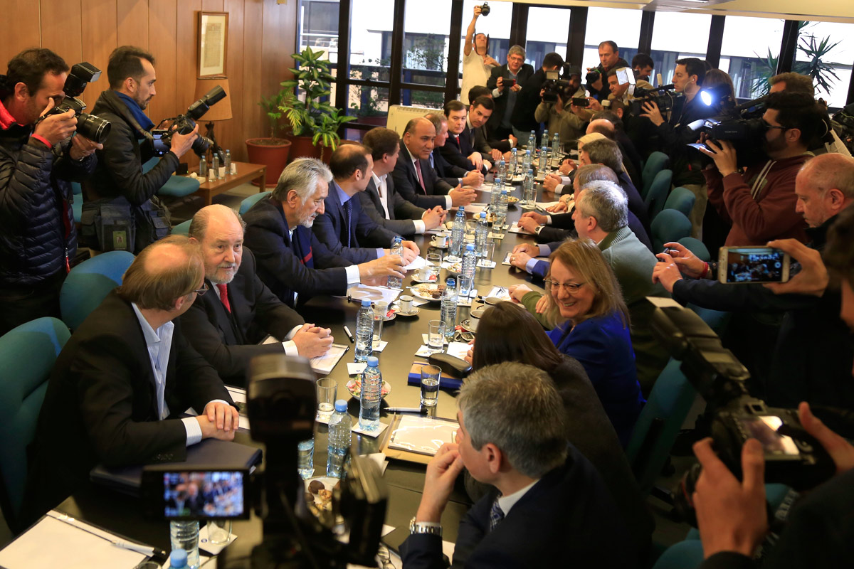 Por parte del gobierno el enviado al cónclave fue el ministro de Interior, Rogelio Frigerio, junto a algunos funcionarios de Hacienda para negociar algunos puntos del presupuesto como la postergación de la rebaja de ingresos brutos y del impuesto al sello.