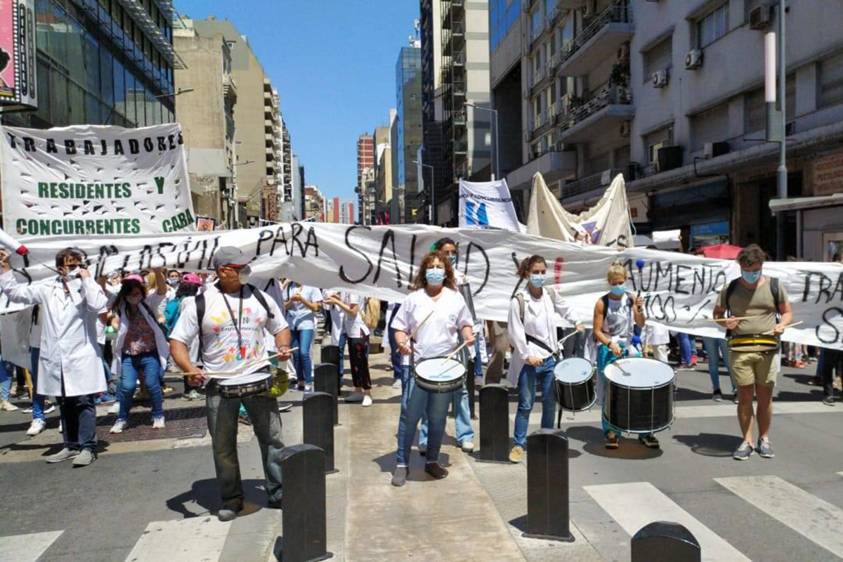 Residentes y concurrentes dependientes de Nación, Ciudad y Provincia de Buenos Aires realizan un paro de 24 horas y una movilización a Plaza de Mayo por reclamos salariales y reivindicaciones laborales en medio de la pandemia del coronavirus. Denuncian que, en algunos casos, cobran 150 pesos la hora y que las personas que hacen concurrencias se exponen al COVID-19 sin cobrar un sueldo ni tener ART. “No somos reconocidos como trabajadores ni en Capital, ni en provincia ni en Nación. Se nos considera como personal en formación y somos los primeros en sostener el sistema de salud”, indicaron desde la asamblea interjurisdiccional.
