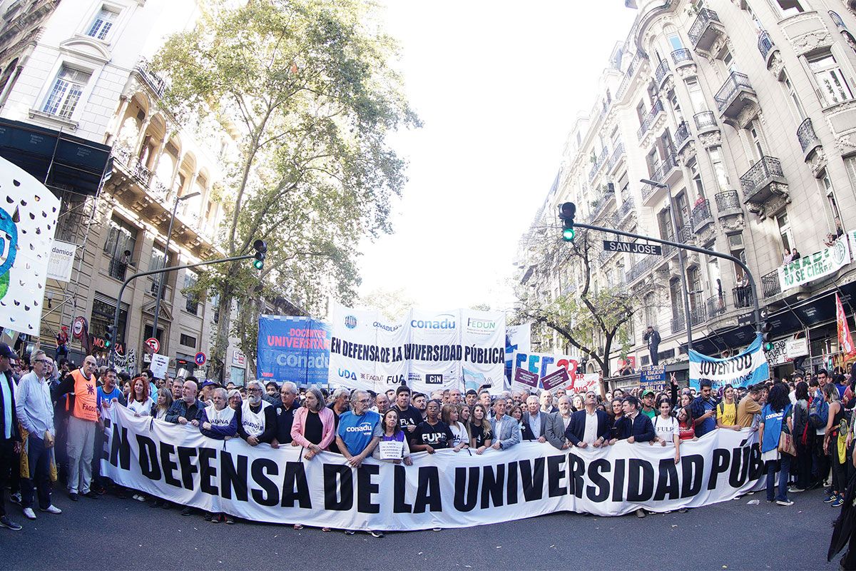 El reclamo se enfoca en la defensa de la universidad pública que se centra en la lucha por el salario de sus casi 200 mil docentes y 50 mil no docentes. Desde la asunción del gobierno, los salarios perdieron más de 50 puntos con relación a la inflación. Los gremios denuncian que el derrumbe de los haberes que ya perforaron la línea de indigencia, obligó a muchos docentes a abandonar sus puestos para orientarse a la enseñanza media donde las remuneraciones, por primera vez en la historia, son superiores. La política de asfixia salarial, aseguran, apunta a un vaciamiento de las casas de estudio y, llegado el caso, a un arancelamiento que afectará a dos millones de estudiantes que cursan en todo el país.