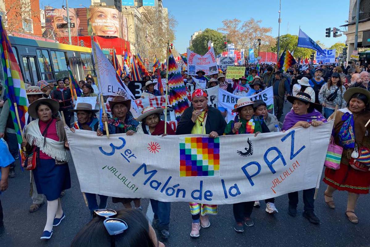 Los cerros bajan a protestar a Buenos Aires. En la mañana diáfana de un martes extrañamente primaveral en pleno invierno, llegó el 3º Malón de la Paz a las opulentas y grises avenidas porteñas. Son decenas de hombres y mujeres de rasgos curtidos por el sol y el olvido. Vienen desde la Puna, los Valles y el Altiplano de Jujuy. Comuneros que alzan su voz contra la reforma constitucional exprés, contra la represión, contra el hambre, contra las mineras, contra la miseria a la que los condena el gobierno que comanda Gerardo Morales. Se amuchan en Plaza Miserere, en el barrio del Once, esa frontera invisible que, según el poeta Washington Cucurto, marca el inicio de Latinoamérica, sus penurias y sus luchas.