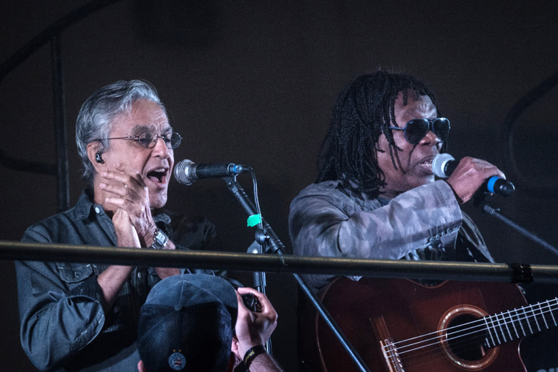 El concierto, frente a una playa de Copacabana donde la bruma ocultaba el mar, llegó a su clímax cuando apareció Caetano Veloso, entonando «Podres Poderes» (Poderes podridos, en español).