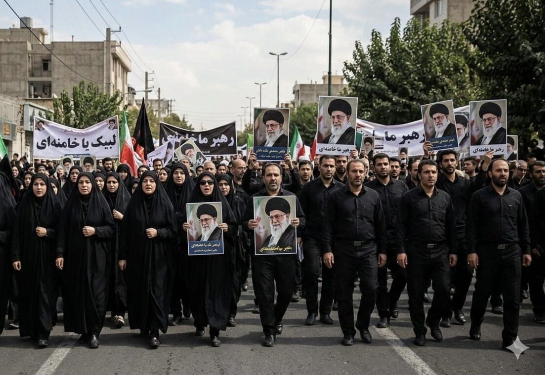 En la capital, Teherán, miles de personas tomaron la plaza de la Revolución (Enghelab), la mayoría vestidas de negro y ondeando banderas iraníes y fotografías de Jamenei a pesar de los bombardeos, que continúan por segundo día consecutivo.