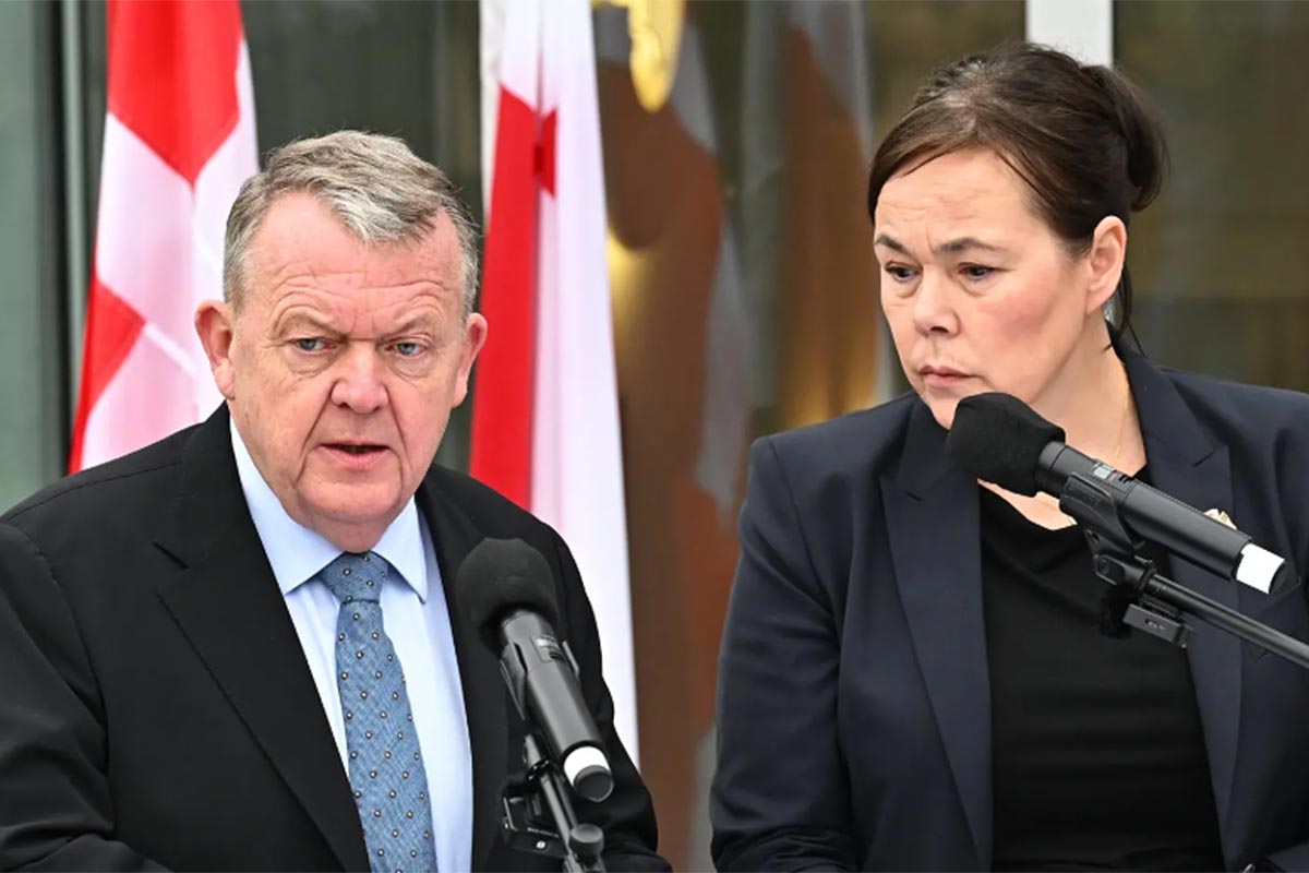 El ministro de Relaciones Exteriores de Dinamarca, Lars Lokke Rasmussen, y su par groenlandesa, Vivian Motzfeldt, en conferencia de prensa luego de la reunión.