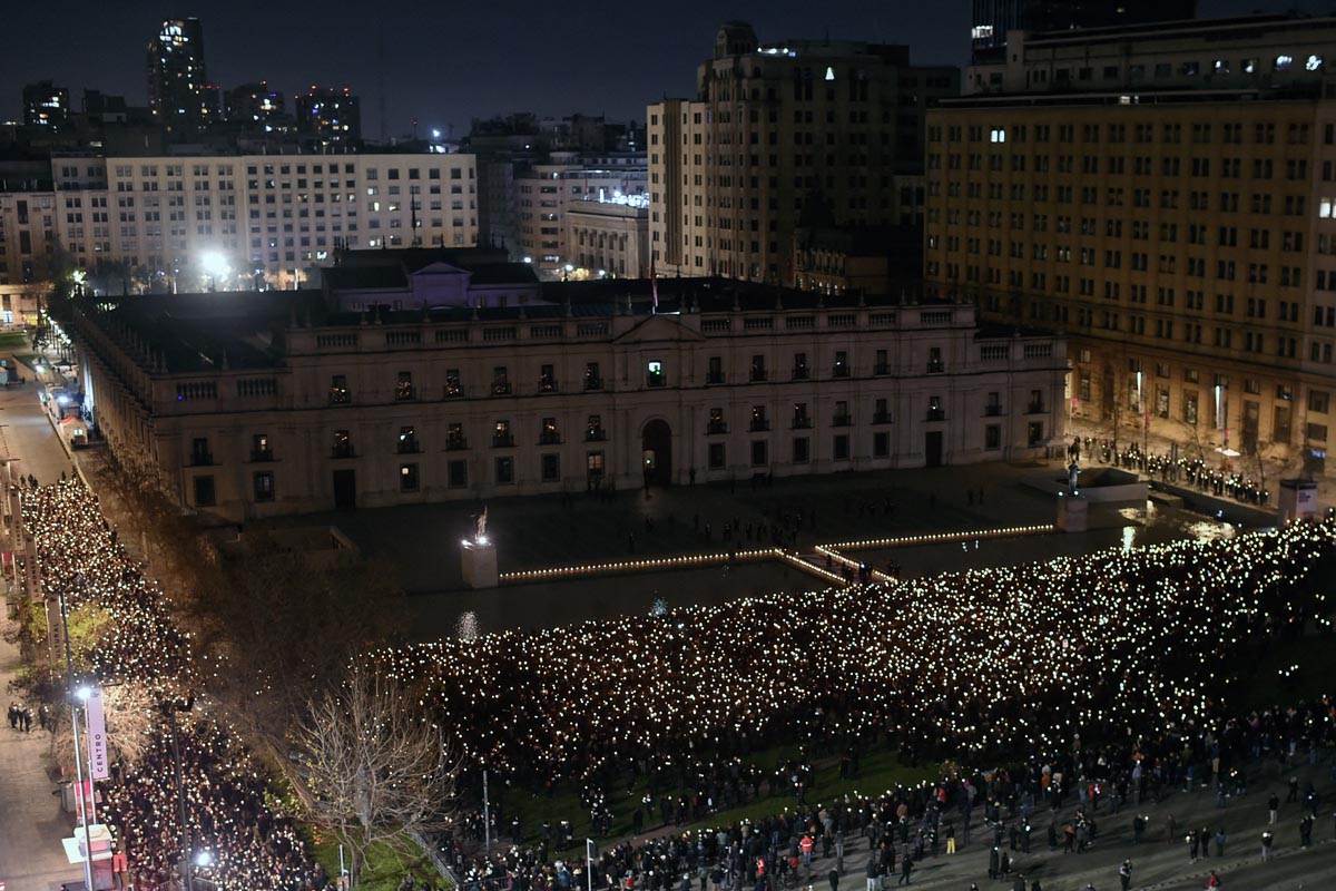 La sede de Gobierno fue bombardeada el 11 de septiembre de 1973 en el golpe contra el gobierno de Salvador Allende y hoy, como gesto del presidente Gabriel Boric, recibió a las mujeres con velas en el frente, como la mayor parte de las asistentes.