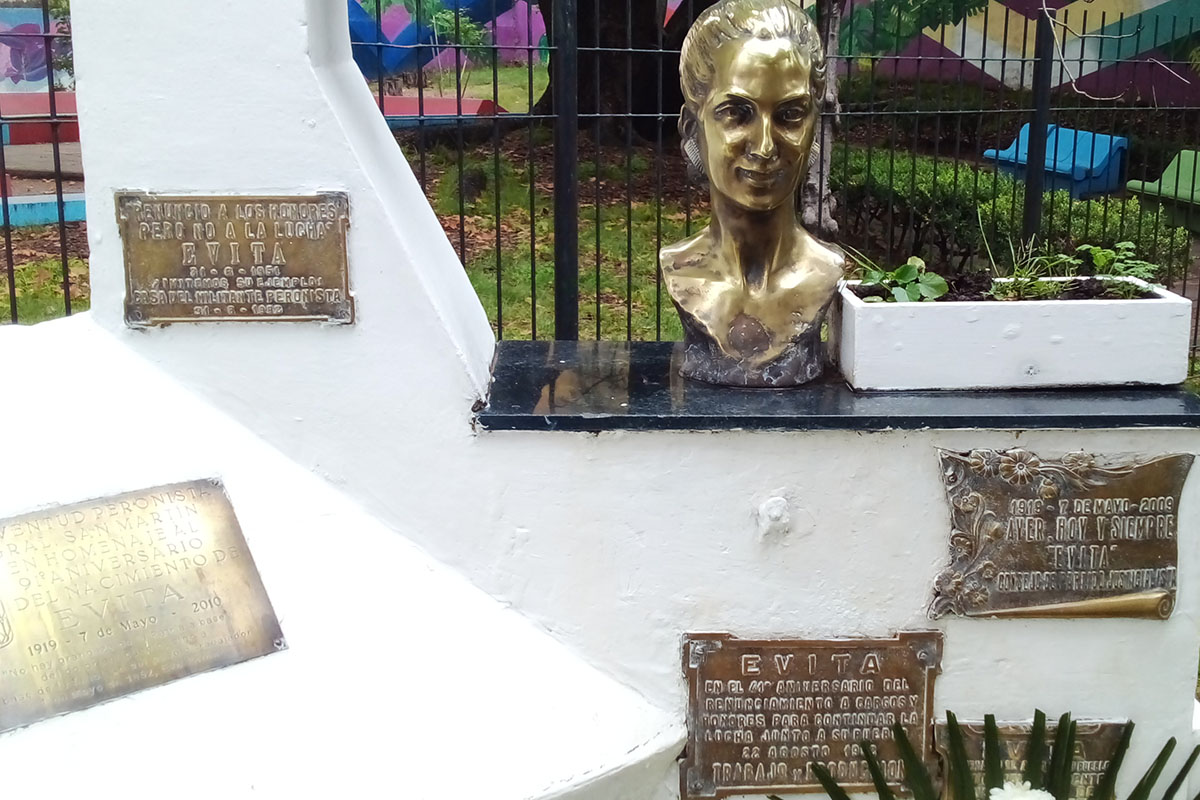 Una abuela que pasó por la plaza se acercó al busto de Evita y le dio un beso. Al consultarle por su devoción contestó: “Mi mamá sufría cáncer y tomaba remedios muy caros, yo era chica recuerdo, y en la Fundación Evita se los regalaban. Así vivió muchos años y pudo cumplir con su mayor anhelo; terminar de criarme a mí y a mis hermanos”.