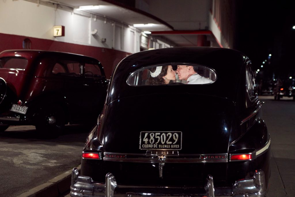 De ahí saldrán los protagonistas que, evadiendo paparazzis, se escaparán en un coche y se besarán por primera vez. Pero antes de rodar esa última escena del día se pide un minuto de silencio en el set: son las 20.55, hora en que falleció Evita.
