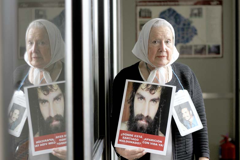 Nora Morales de Cortiñas lleva la mitad de su vida luchando. El 15 de abril de 1977, en plena dictadura cívico-militar »eclesiástica y económica», agrega ella, un grupo de tareas secuestró a su hijo Carlos Gustavo en inmediaciones de la estación de Castelar. Tenía 24 años, era militante político y trabajaba en el Indec. No supieron nada más de él. Y sigue desaparecido. Después de 40 años de ausencia y lucha, está convencida de que el pueblo argentino «ya no soporta más un hecho como la desaparición de Santiago». Pero también por eso la desaparición forzada del joven en Chubut volvió a inocularle el miedo a la impunidad. Y se estremece porque como le pasó a ella, la familia Maldonado no logra saber qué pasó con su ser querido.