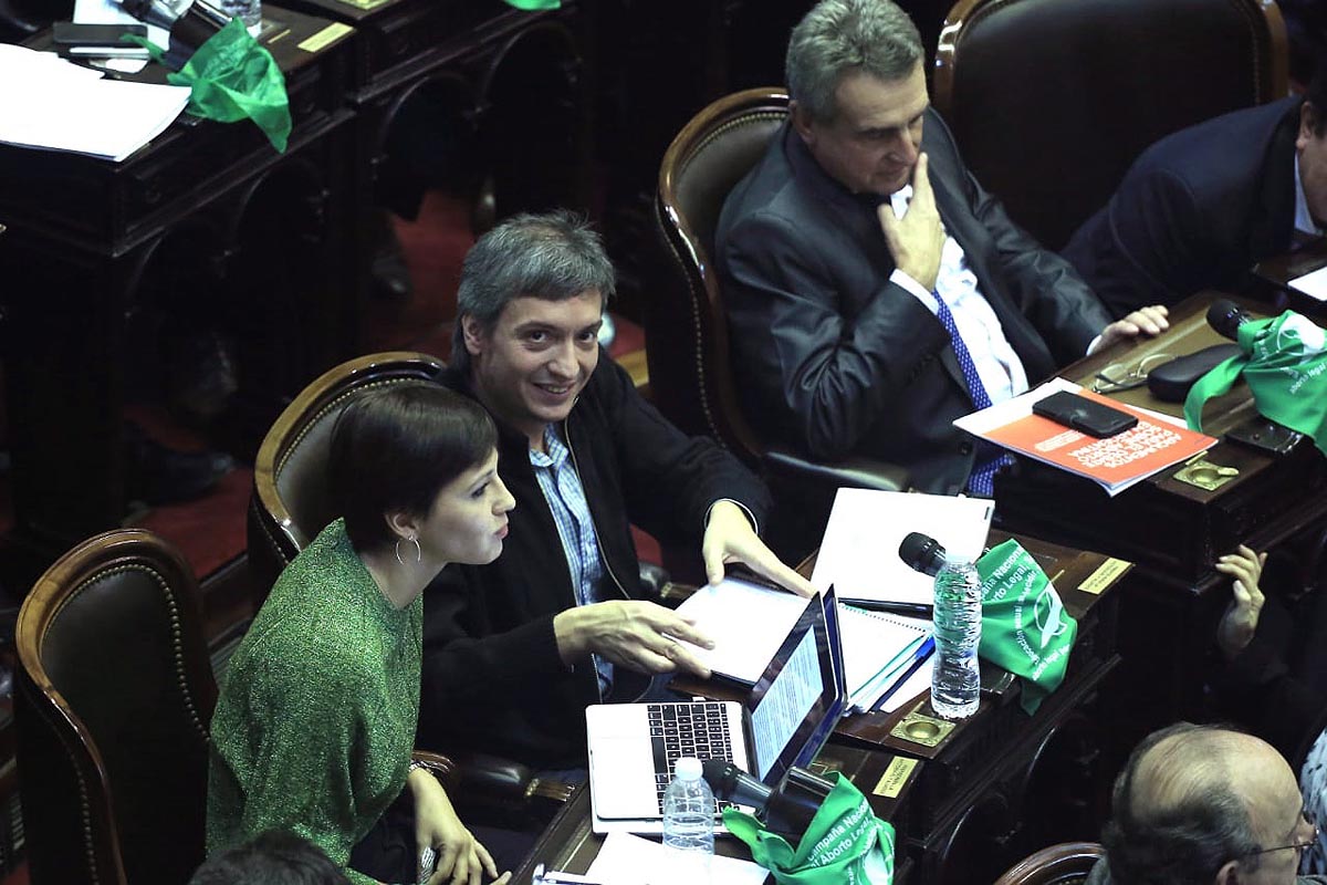 Dentro del recinto, la bancada del Frente para la Victoria y del Peronismo para la Victoria ya se pintaba de verde. Los pañuelos que identifican la lucha de la Campaña por el aborto legal, seguro y gratuito estaban atados a muchos de micrófonos del sector que suele ocupar la oposición en recinto.