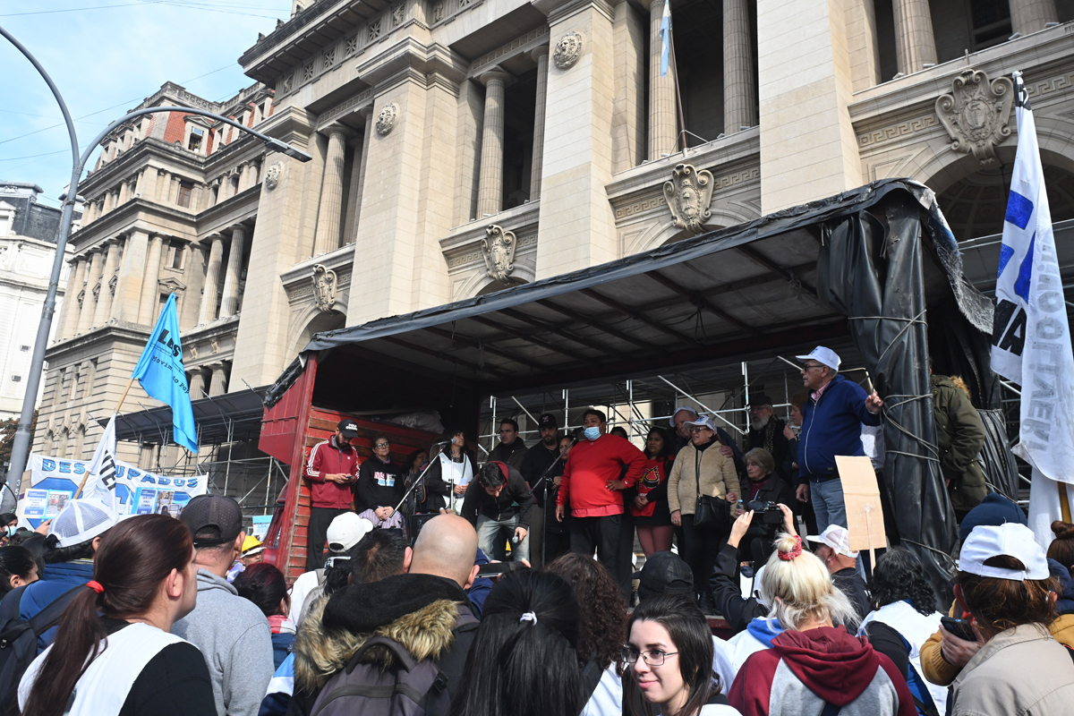 «Acá solamente hay justicia contra los trabajadores, contra los desocupados y contra los movimientos que defendemos a los pobres. Las causas contra los que han desbastado la Argentina, las causas judiciales de los que nos han endeudado la Argentina por 100 años, mueren en los cajones de los tribunales. Y es por eso que se ensañan contra las organizaciones sociales», dijo Alderete, en declaraciones a la prensa.