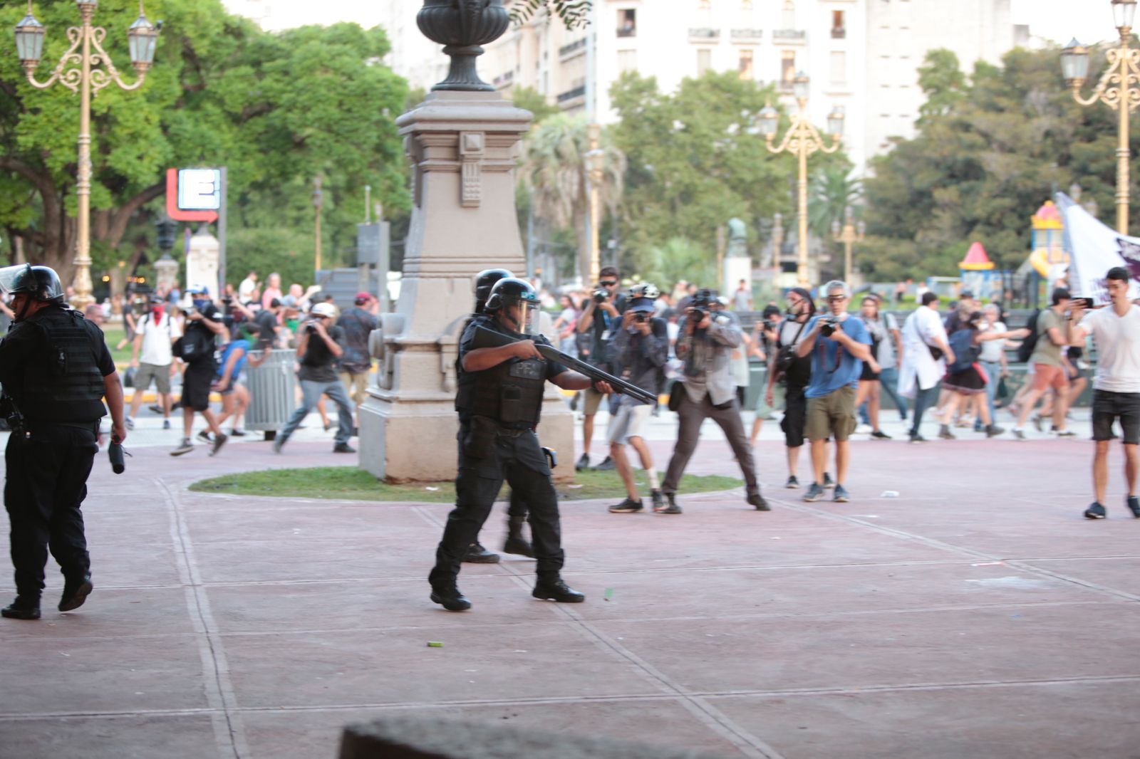 Como ocurrió por la tarde y la noche del miércoles, el operativo de seguridad alrededor del palacio legislativo se volvió a poblar de fuerzas federales que golpearon, arrojaron gas pimienta y dispararon con balas de goma contra la protesta pacífica de partidos de izquierda, asambleas barriales y personas sueltas. Incluso fueron lesionados fotorreporteros y cronistas, a quienes la policía disparó con especial interés.