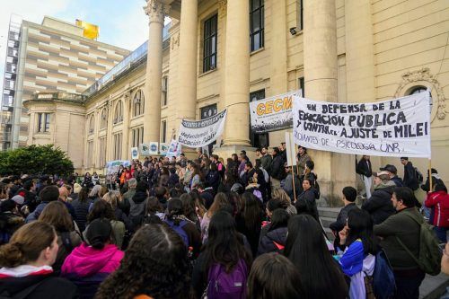 En avenida Francia y Córdoba, autoridades de la UNR y representantes del gremio docente, Coad, del no docente, Apur, y los referentes del claustro estudiantil repudiaron poco antes del mediodía las amenazas a los dos alumnos.“Sabemos que no es una amenaza aislada, es una persecución ideológica y acto de violencia política que nos recuerda a los peores momentos de la historia y lo repudiamos”, refirió Finocchiaro.
