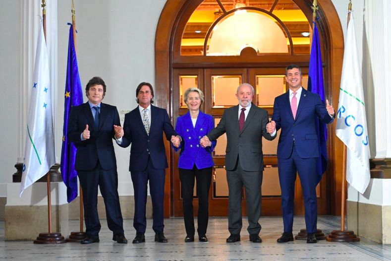A pesar de la celebración, el acto no estuvo exento de tensiones políticas. La ausencia más notoria fue la del presidente de Brasil, Luiz Inácio Lula da Silva, quien realizó un acto paralelo en Río de Janeiro el día anterior. Su canciller, Mauro Vieira, representó a la principal economía del bloque.Durante los discursos, las diferencias ideológicas quedaron expuestas. El presidente argentino agradeció especialmente a su “amiga” Giorgia Meloni (primera ministra de Italia) y celebró la reciente captura de Nicolás Maduro en Venezuela, elogiando el accionar de Estados Unidos.