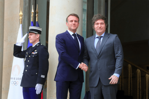 El encuentro, que duró unos 15 minutos, se desarrolló en la antesala de la fiesta de inauguración de los Juegos Olímpicos de París, a la que el mandatario argentino irá junto a su hermana, la secretaria general de la Presidencia, Karina Milei.