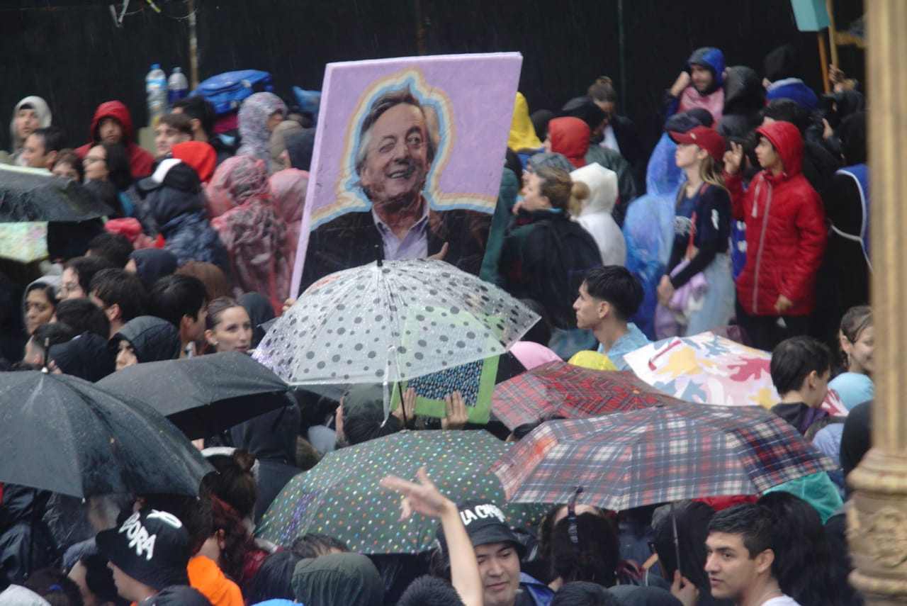 Sobre el escenario la única oradora fue Cristina Fernández de Kirchner, pero las voces de la multitud explican en primera del singular el aguante bajo la lluvia.