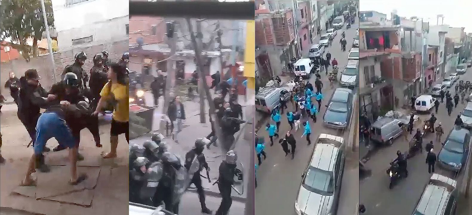 Los videos del despliegue policial comenzaron a circular rápidamente en las redes sociales: policías motorizados que empujan a los vecinos y los detienen sin causa aparente, disparos de balas de goma indiscriminados, avance grupal de efectivos munidos de tonfas, cascos y escudos que dibujan un paisaje de guerra en el ocaso de la tarde.