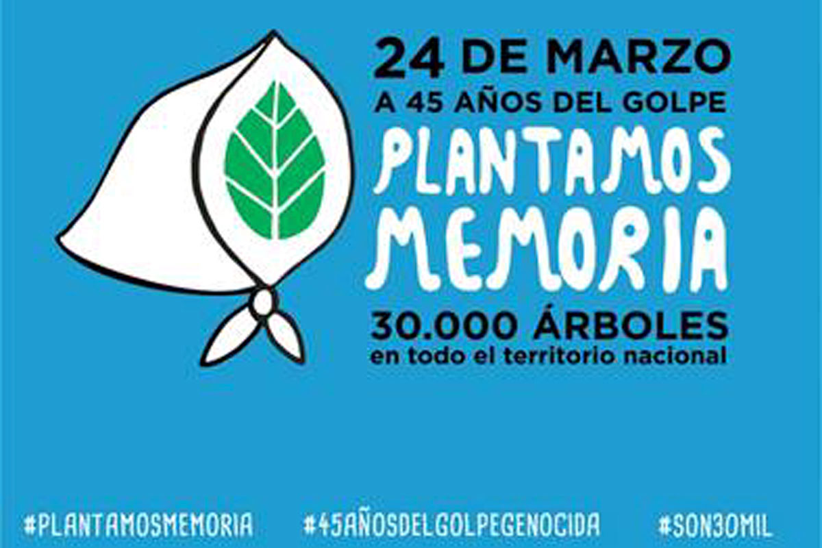 Ante la imposibilidad de marchar a la Plaza de Mayo, los organismos de Derechos Humanos invitaron a sembrar el 24 de marzo 30 mil árboles, en memoria de los 30 mil detenidos desaparecidos y a compartir imágenes en las redes sociales con el hashtag #PlantamosMemoria.