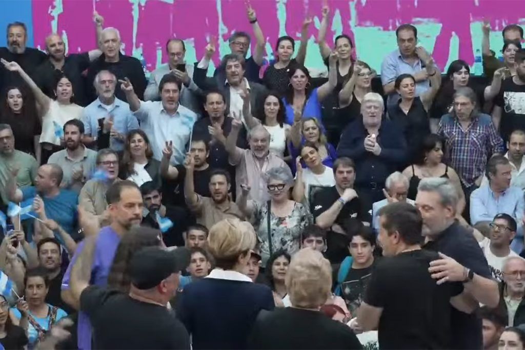 Mientras tanto, la militancia presente cantaba: “traigan al gorila de Milei / para que vea / que este pueblo no cambia de idea lleva las banderas de Evita y Perón”..