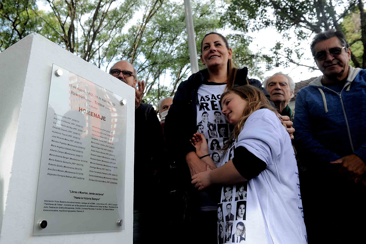 La actividad comenzó a las 14 con el descubrimiento de una placa recordatoria a los «Héroes de Trelew» con la leyenda «Libres o muertos, jamás esclavos. Hasta la victoria siempre», y los nombres de los participantes de la fuga del 15 de agosto de 1972, entre ellos, los 19 que fueron recapturados y llevados a la base aeronaval Almirante Zar, en Chubut, donde el 22 de agosto 16 de ellos morirían ejecutados.