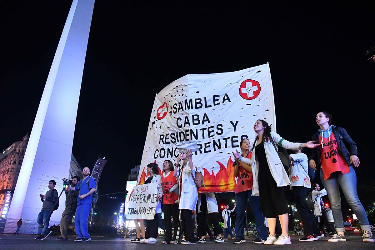 Las y los médicos residentes y los concurrentes de CABAparan y se movilizan a una sede del Ministerio de Salud porteño este miércoles en reclamo de «salario y cobertura en riesgos del trabajo» para los concurrentes que prestan servicios en el distrito.