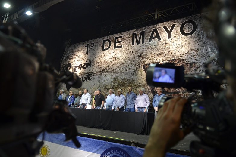 Arriba del escenario acompañaban a Schmid el resto de los integrantes de la conducción de la central obrera: el secretario general del gremio de la Sanidad, Héctor Daer, y del Sindicato de Obreros y Empleados de Estaciones de Servicios, Garages, Playas de Estacionamiento y Lavaderos, (SOESGyPE), Carlos Acuña. Además, estaban en el escenario el líder de Camioneros y secretario general de la CGT, Pablo Moyano; de Obras Sanitarias José Luis Lingeri; de Panaderos, Abel Frutos; del Sindicato del Seguro y Secretario de Prensa y Comunicación de la CGT, Jorge Solá; de los Judiciales, Julio Piumato; y de los Canillitas, Omar Plaini.