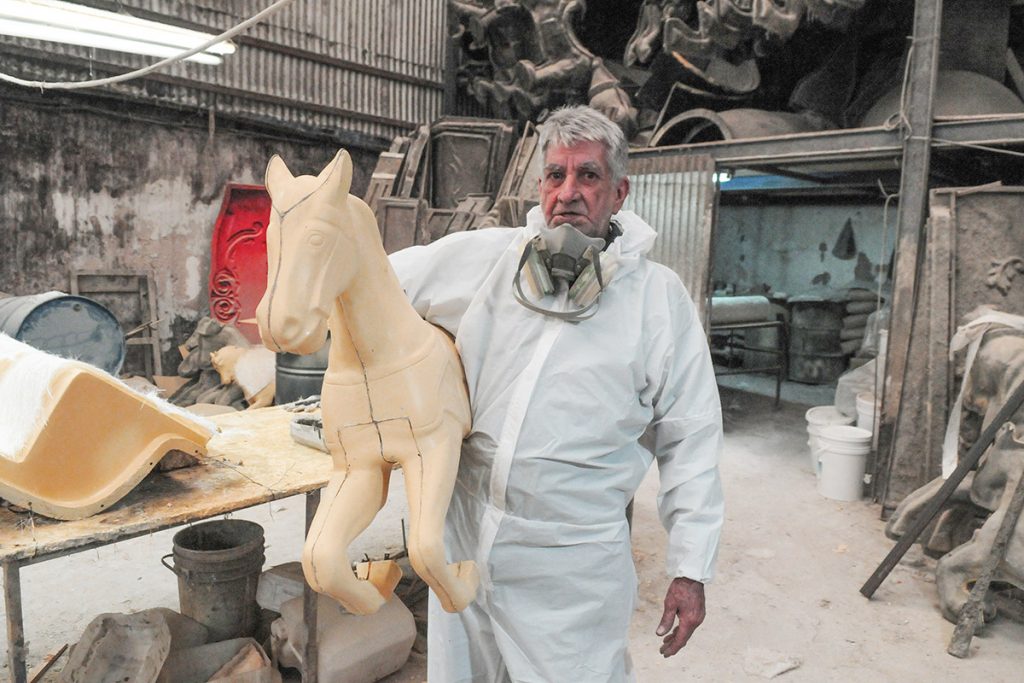 Un carrusel estándar puede demandar hasta tres meses de trabajo. Uno para el extranjero de tres pisos, casi todo un año. De ahí que el costo de venta vaya de 20 mil hasta 70 mil dólares. El matricero Ramón Gambarte tiene 67 pirulos. «Acá plantamos la semilla del carrusel». Es nacido y criado en la ciudad tucumana de Acheral: «Infancia humilde, mi amigo. No había ni una moneda para la calesita». Con los años, aprendió que a veces la vida da revancha: «Cuando terminamos de montar una calesita, aunque ya esté grande, me subo y doy una vuelta. Es como tener otra infancia».