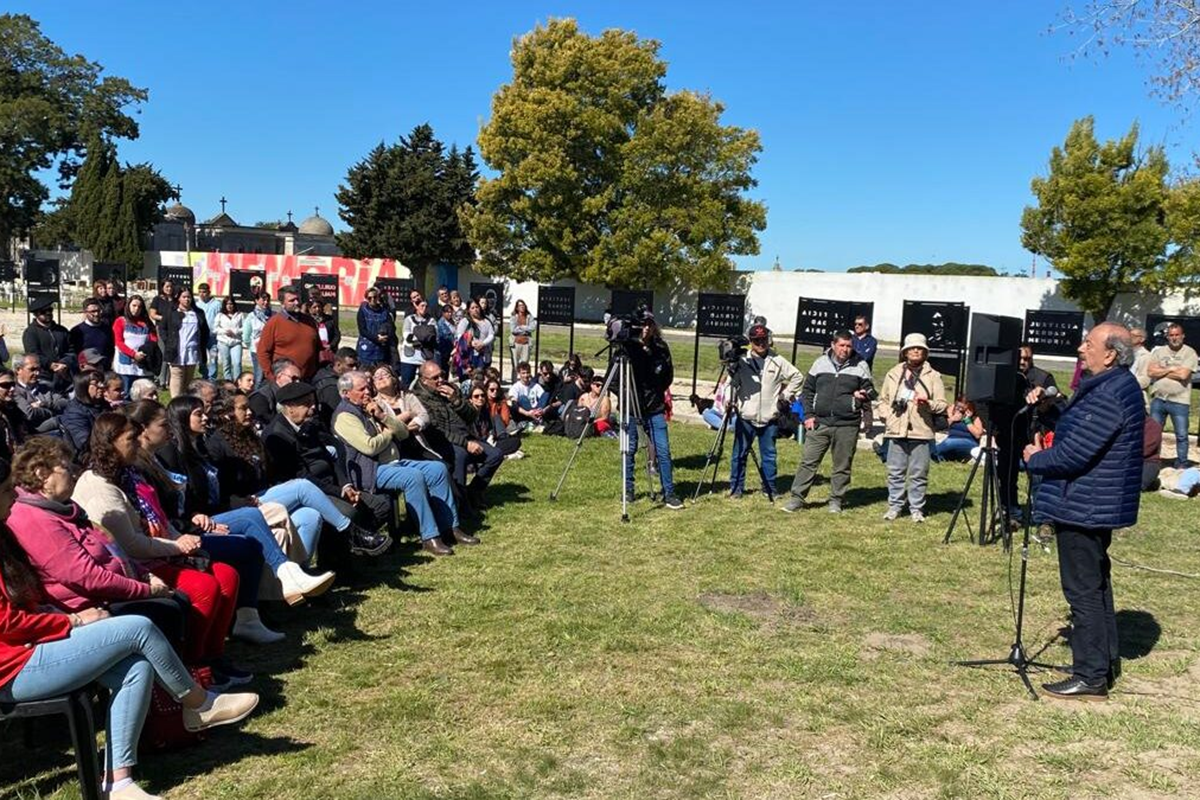Durante la inauguración también tuvo lugar “la presentación de una muestra que recorre la historia del cementerio, desde los primeros enterramientos NN hechos en el ‘77 hasta la creación del Sitio de Memoria en 2017”, reconstruyó Sandra.
