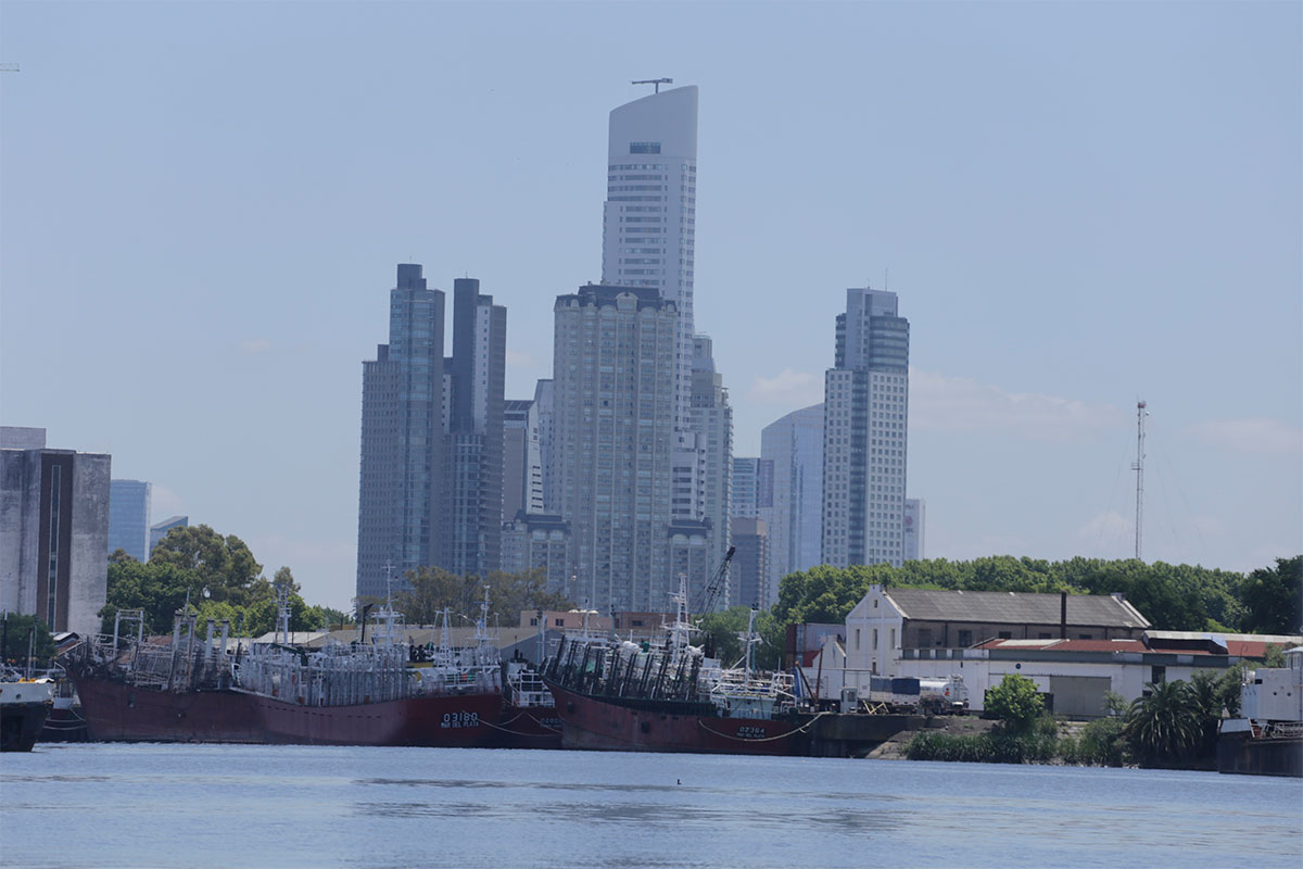 Del lado norte del río se aprecian las longevas barracas donde se acopiaba mercadería for export. La Barraca Peña, estoica, sigue de pie. Data del finales del siglo XVIII y tuvo la primera conexión ferroportuaria de la Argentina. Más adelante, a la altura de la Vuelta de Rocha, se pueden cerrar los ojos y con la mente pintar un fresco digno de Quinquela Martín o de Fortunato Lacámera, la belle époque boquense. Trabajadores haciendo fila para zarpar en los botes hacia la Isla Maciel, barcos pesados navegando, los boteros apurando el cruce y pibitos corriendo cerca del trasbordador. Volvemos al presente. El viaje sigue rumbo a cuatro bocas. El Riachuelo abraza a Dock Sud, Puerto Madero y el Río de la Plata. El polo industrial del «Doque» (ahí queda Villa Inflamable, donde vivían las primeras 17 denunciantes de la causa), el verde de la isla Demarchi de la Costanera Sur, las frígidas torres de Madero, el Puente Transbordador Nicolás Avellaneda con una pata en La Boca y la otra en Maciel.