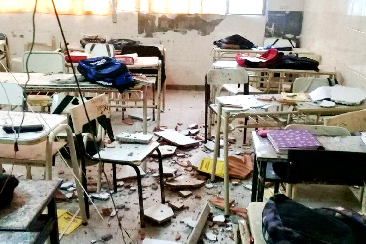 El texto resalta que el 50% de las escuelas del partido de General Pueyrredón, con epicentro en Mar del Plata, tiene filtraciones en techos y paredes; un 25%, falencias de calefacción; y otro 25%, problemas con los sanitarios, falta de agua potable y limpieza de tanques. Según estimaciones de los gremios, sólo en ese partido se necesitan 15 edificios nuevos con 26 aulas. El bloque de Unidad Ciudadana presentó un proyecto para que se declare al distrito en Emergencia en Infraestructura Escolar. “Hay un ajuste en curso en la Provincia y este es un ejemplo –afirma Gustavo Santos Ibáñez, titular de la filial marplatense de Suteba–. Mar del Plata y Batán ocupan hoy el triste primer lugar en el ranking de déficit de infraestructura escolar. Cursos enteros hacen rotación de días por falta de calefacción. Algo que se agravó cuando la gobernadora decidió intervenir el Consejo Escolar: pasaron dos meses y no ha resuelto los problemas”.