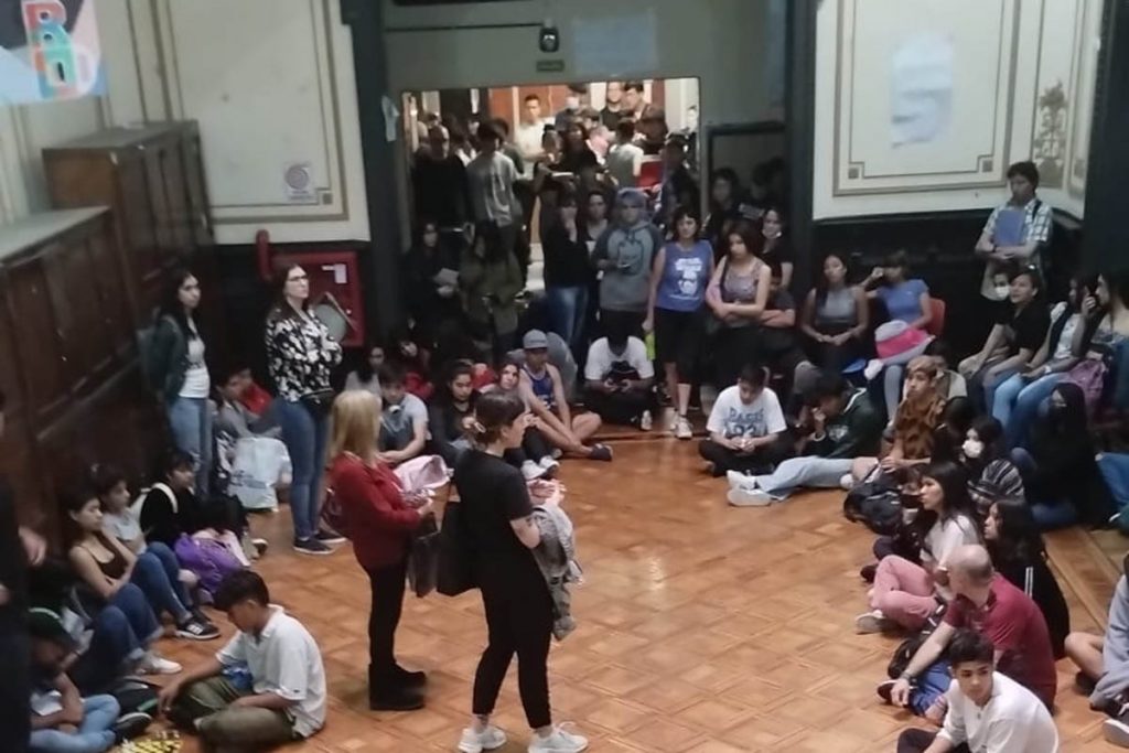 La semana pasada, el histórico Comercial 4 de San Telmo, sufrió el desmoronamiento del techo en la sala de profesores y profesoras, lindera a las aulas del alumnado. En el mismo edificio ubicado en Perú al 1300, funciona el Comercial N° 27 en el turno noche. Ambos establecimientos educativos no tuvieron clases el lunes 1 de noviembre. Pasaron 10 días de la caída de techo, y la comunidad educativa espera mayores precisiones y garantías, “queremos estar seguros de que nuestra escuela está en condiciones para que podamos seguir estudiando. Necesitamos saber si nuestro colegio está apto para seguir teniendo clases”, cuenta Tiempo Lucas González, estudiante de quinto año y delegado del curso. Este miércoles, tanto docentes como estudiantes, decidieron realizar una medida de fuerza esperando la llegada del arquitecto de Infraestructura Escolar del ministerio que conduce Soledad Acuña.