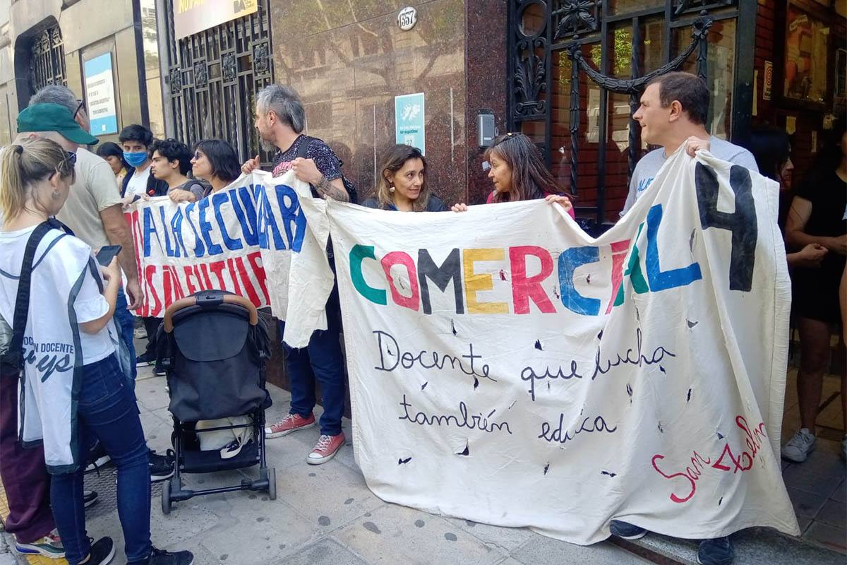La comunidad educativa del Comercial 4 es una escuela que tiene un historial de reclamos por mejoras en el edificio de hace muchísimos años. En 2015 fue mudada al inmueble actual, que ya se encontraba en malas condiciones, con la promesa de arreglos que nunca se realizaron. El temor de estudiantes y docentes, crece con el correr de las horas. Consideran que la escuela no está condiciones de ser habitada. Sostienen que hay un silencio cómplice entre la rectora de la institución y la supervisión escolar.