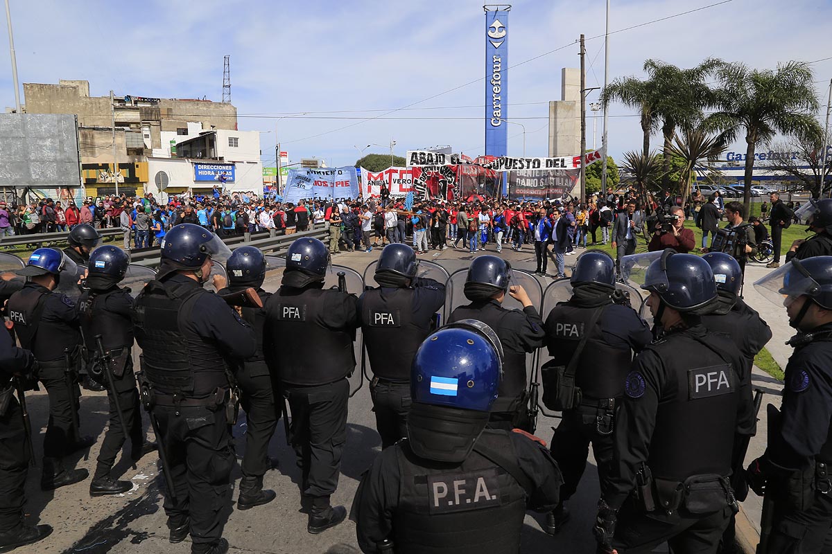Organizaciones sociales y sindicales se movilizaron desde las 10 a Puente Pueyrredón, militarizado por la Policía Federal y Prefectura Nacional.