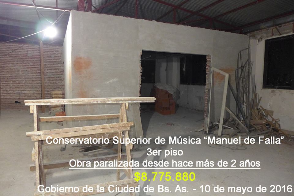 Según le dice a Tiempo Argentino Gastón Ceruti, representante del Centro de Estudiantes del Conservatorio, apenas fue designado el ministro de Cultura de la Ciudad, Ángel Mahler, músico, hizo una visita al conservatorio y se comprometió a buscarle una locación. Sin embargo, no cumplió con su promesa y hoy les informa que lo máximo que les puede ofrecer a docentes y estudiantes es un traslado al Centro Cultural San Martín, un lugar en el que el Conservatorio ya funcionó y que no reúne las condiciones.