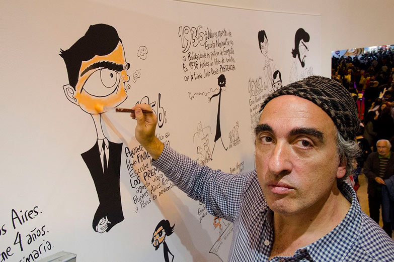 Un mediodía me acerqué a su escritorio con un libro de la colección Salvat, tapa dura, a todo color, hermoso y caro, que había comprado en el Parque Lezica. Un huevo me había costado. Yo lo veía muy ceniciento y barbudo, triste, con la voz apagada, laborioso, pero en otra, a Oesterheld. En la editorial nadie le daba bola, no se le acercaban. Él entraba por la puerta de atrás, y su recorrido se limitaba al pasillo: el baño y la cafetera. Pero yo iba, lo saludaba, le ofrecía un café, y ese día le mostré el libro: Literatura Dibujada. Se sintió atraído, dejó de trabajar un buen rato, y yo aproveché para mirar junto con él las figuritas que recorrían la historia de la historieta.