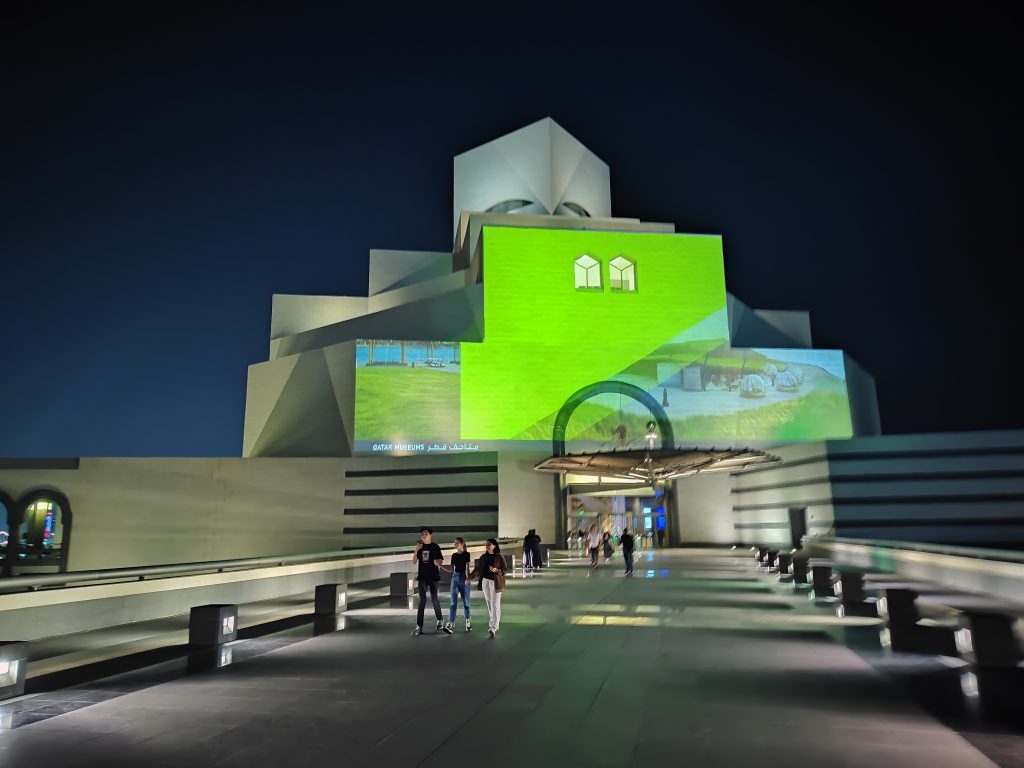 El Museo está situado en una isla artificial en un extremo de la Bahía de Doha rodeado por un malecón curvo. Ocupa un área de 35.000 m² más un edificio con fines educativos que tiene otros 2.700 m². El conjunto está rodeado de un parque de 10 ha.