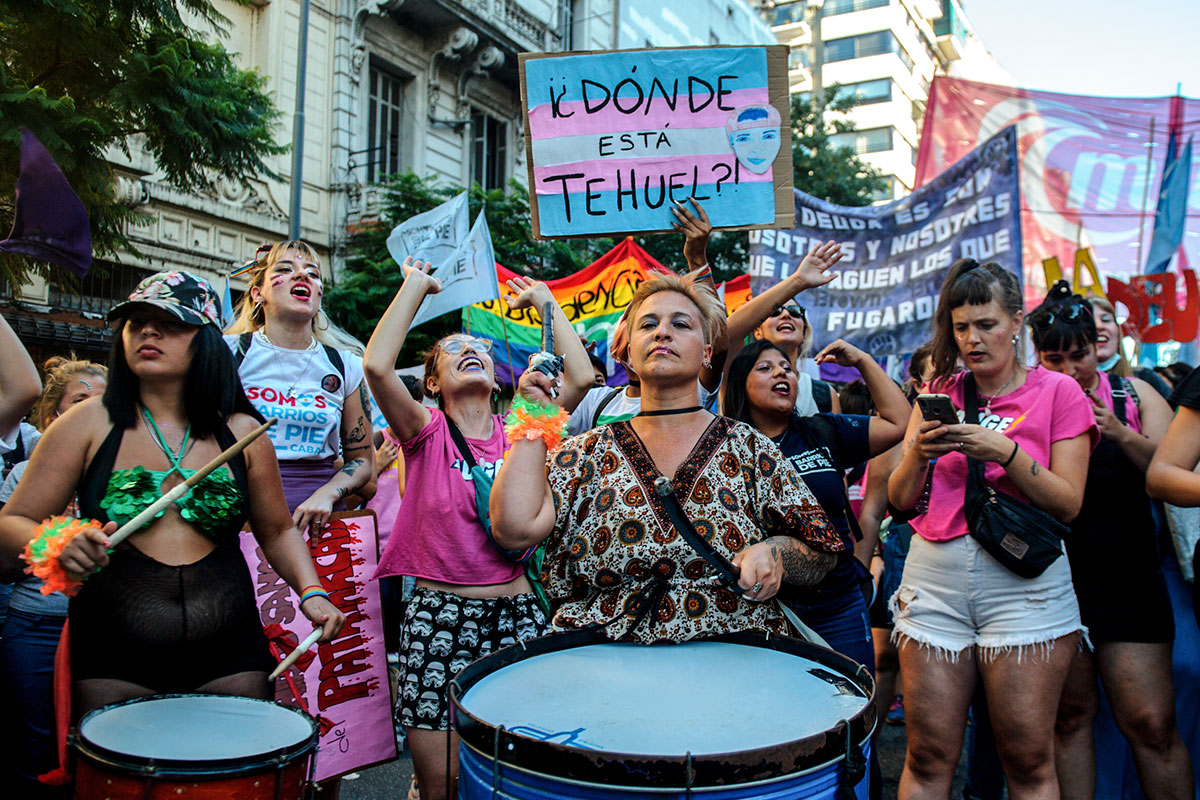 El otro gran reclamo, en esta jornada, estuvo marcado por la presencia de Higui y el pedido de absolución. En esa columna, también confluyeron los reclamos por la aparición con vida de Tehuel, cuya desaparición cumple este viernes un año.