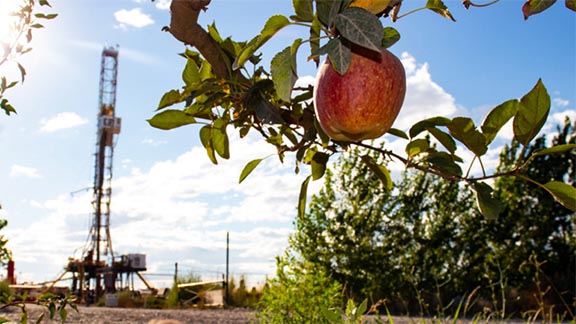 El Alto Valle, entre Neuquén y Río Negro, es una zona de riego y producción de frutas tanto para el mercado interno como para exportación. Sin embargo, la zona es lindera al yacimiento de Vaca Muerta y desde hace una década los pozos de exploración petrolera no convencional están avanzando sobre las plantaciones de árboles de peras y manzanas.