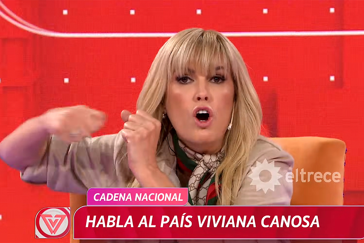 Resulta que el ataque a las diversidades sexuales y en particular a las personas trans es habitual en Viviana Canosa y también lo son sus comentarios transfóbicos. El 28 de marzo en una entrevista a Traniela, mujer trans enfrentada con los transfeminismos, le dijo “¿sabés lo que me vuelve loca? No escondés ‘el bulto’”, aportando nuevamente a la confusión entre sexo y género.