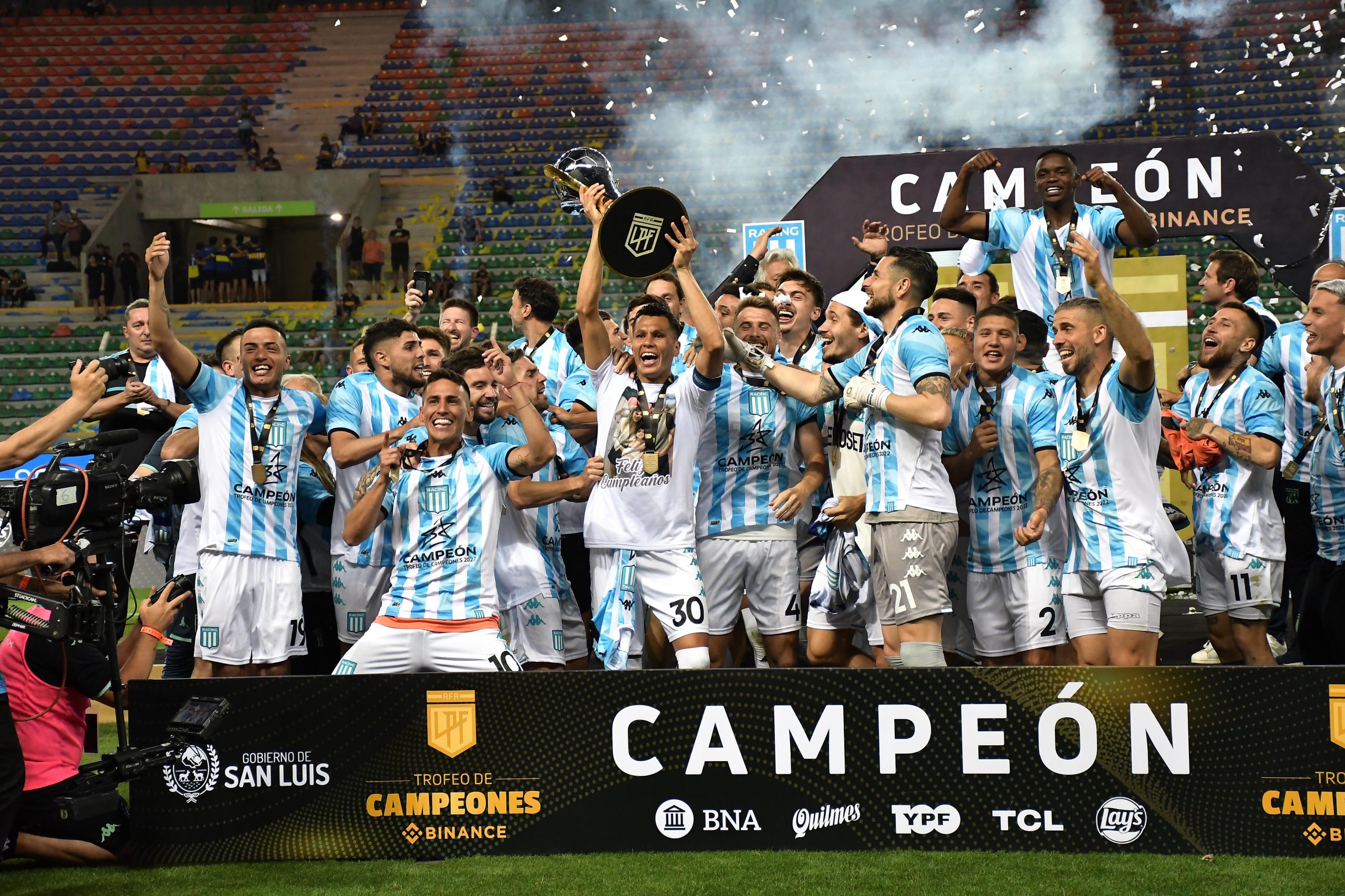 Así fue todo. En medio del escándalo, la felicidad de un Racing que puede sentirse campeón aun sin haberlo sido. Ganó un trofeo, que no es poco. Y sobre todo, legitimó un buen trabajo realizado durante meses por Fernando Gago y su plantel.