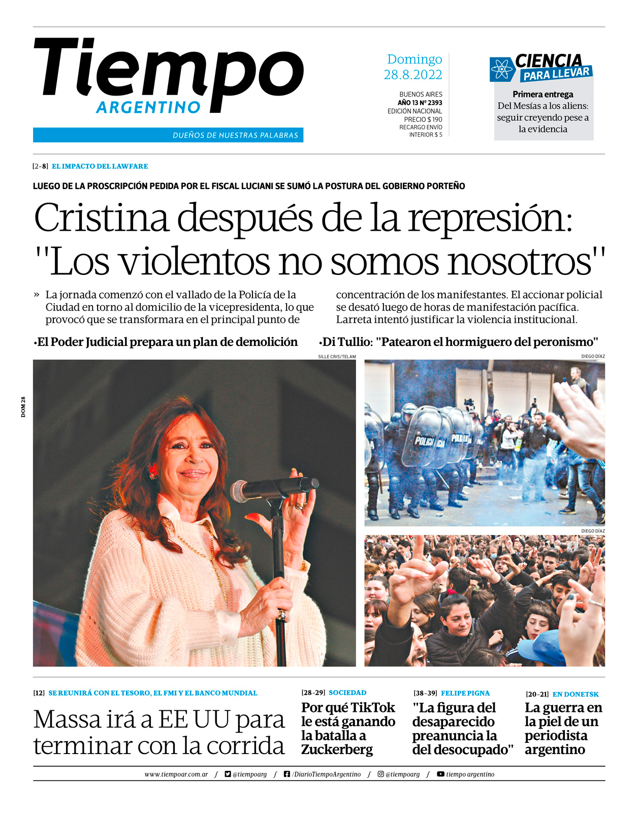 Cristina después de la represión: «Los violentos no somos nosotros»